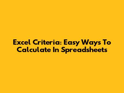 Excel Criteria: Easy Ways To Calculate In Spreadsheets