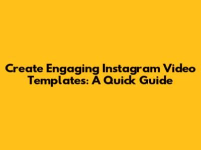 Create Engaging Instagram Video Templates: A Quick Guide