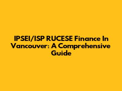 IPSEI/ISP RUCESE Finance In Vancouver: A Comprehensive Guide
