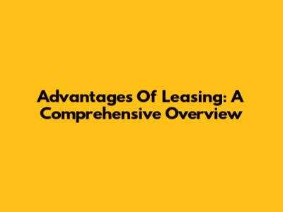 Advantages Of Leasing: A Comprehensive Overview