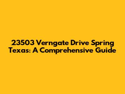 Welcome, guys! Today, we’re diving deep into everything you need to know about 23503 Verngate Drive, Spring, Texas. Whether you're considering moving here, already a resident, or just curious about this vibrant community, this guide has got you covered. We’ll explore the neighborhood's highlights, local amenities, real estate insights, and all the little details that make this place special. So, let’s jump right in!