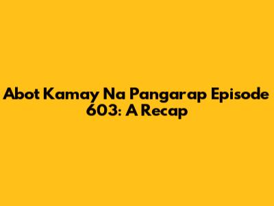 Hey guys! Let's dive straight into Abot Kamay Na Pangarap Episode 603. This episode was packed with drama, revelations, and heartwarming moments that kept us all glued to our screens. If you missed it, don’t worry; I’ve got you covered with a detailed recap. If you are a fan of the show, this recap is just for you!