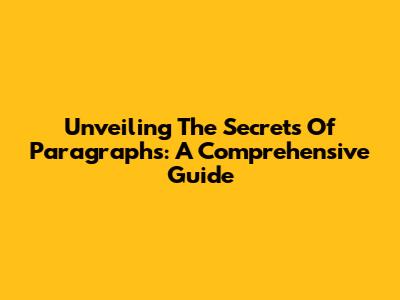 Unveiling The Secrets Of Paragraphs: A Comprehensive Guide