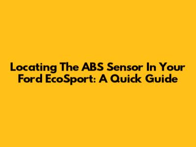 Locating The ABS Sensor In Your Ford EcoSport: A Quick Guide