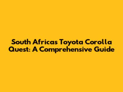 South Africa's Toyota Corolla Quest: A Comprehensive Guide