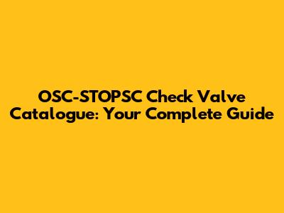 OSC-STOPSC Check Valve Catalogue: Your Complete Guide