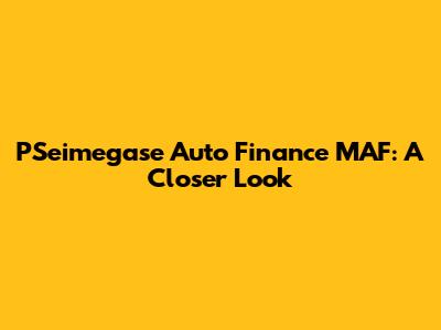 PSeimegase Auto Finance MAF: A Closer Look