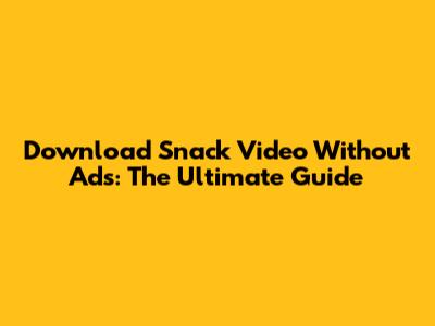 Download Snack Video Without Ads: The Ultimate Guide