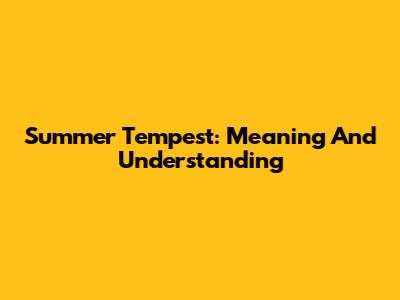 Summer Tempest: Meaning And Understanding