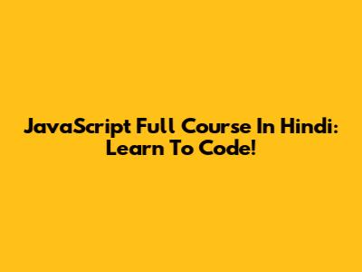 JavaScript Full Course In Hindi: Learn To Code!