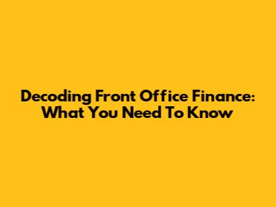 Decoding Front Office Finance: What You Need To Know