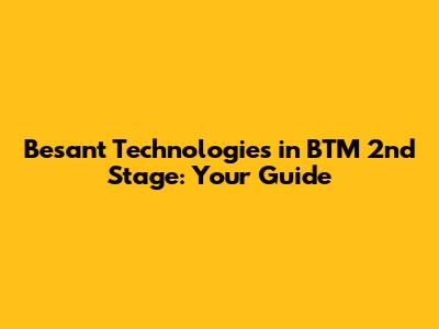Hey guys! Welcome to the ultimate guide about Besant Technologies in BTM 2nd Stage! If you're looking to level up your tech skills or kickstart your career in the IT industry, you've probably stumbled upon Besant Technologies. And if you're in or near BTM 2nd Stage, you're in luck! This article will break down everything you need to know about Besant Technologies in this prime location. We'll dive into the courses they offer, what makes them stand out, and how they can help you achieve your career goals. Let's get started, shall we?