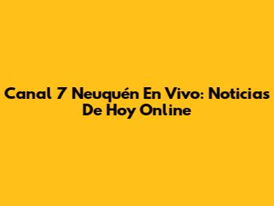 Canal 7 Neuquén En Vivo: Noticias De Hoy Online