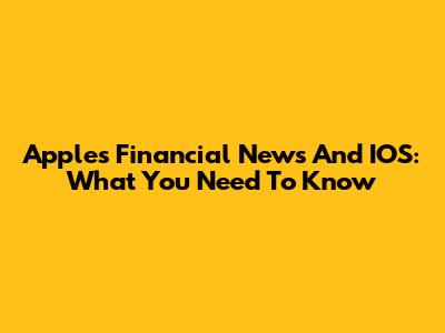 Apple's Financial News And IOS: What You Need To Know