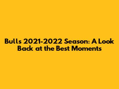 Bulls 2021-2022 Season: A Look Back At The Best Moments