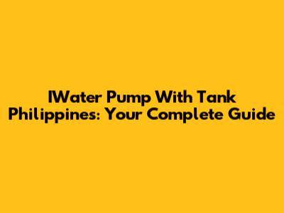 IWater Pump With Tank Philippines: Your Complete Guide