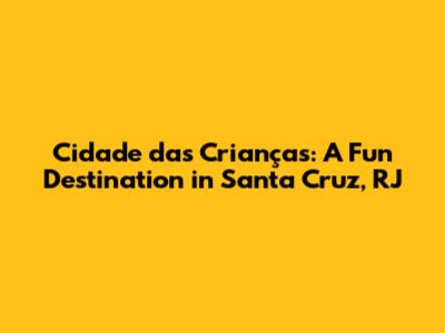 Welcome, guys, to a comprehensive exploration of Cidade das Crianças, a cherished recreational spot located in Santa Cruz, Rio de Janeiro. If you're planning a family outing or simply looking for a fun-filled day, this place might just be what you need. Let’s dive into what makes Cidade das Crianças a worthwhile destination.