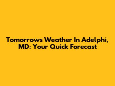Tomorrow's Weather In Adelphi, MD: Your Quick Forecast