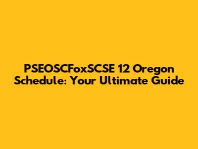 PSEOSCFoxSCSE 12 Oregon Schedule: Your Ultimate Guide