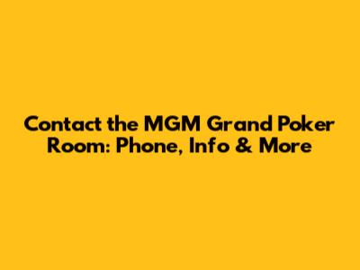 Contact The MGM Grand Poker Room: Phone, Info & More