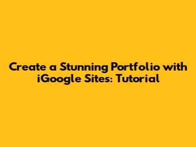 Creating an online portfolio is essential for showcasing your work and skills in today's digital world. Whether you're a designer, writer, photographer, or any other type of creative professional, an online portfolio allows you to present your best work to potential clients and employers. While there are many platforms available for building portfolios, iGoogle Sites offers a simple and effective way to create a professional-looking portfolio without needing advanced technical skills. This tutorial will guide you through the process of creating a stunning portfolio using iGoogle Sites, step by step, ensuring that you can present your work in the best possible light.