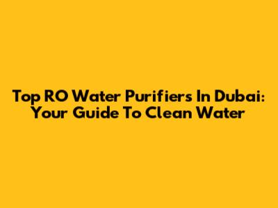 Top RO Water Purifiers In Dubai: Your Guide To Clean Water