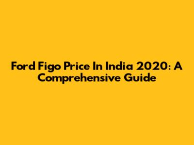 Ford Figo Price In India 2020: A Comprehensive Guide