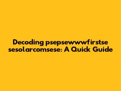 Let's dive into unraveling the mystery behind "psepsewwwfirstse sesolarcomsese." It might look like a jumble of characters at first glance, but breaking it down can give us some insight. In this article, we'll explore potential interpretations and what this string of text could possibly mean. So, stick around, and let's get started!