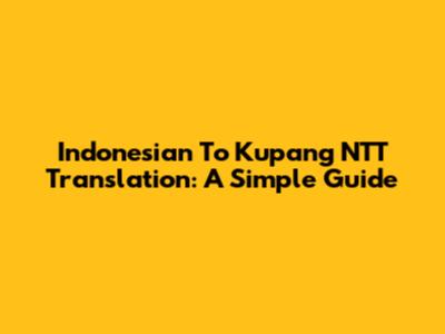 Indonesian To Kupang NTT Translation: A Simple Guide