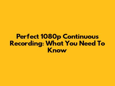 Perfect 1080p Continuous Recording: What You Need To Know