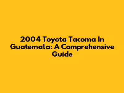 2004 Toyota Tacoma In Guatemala: A Comprehensive Guide
