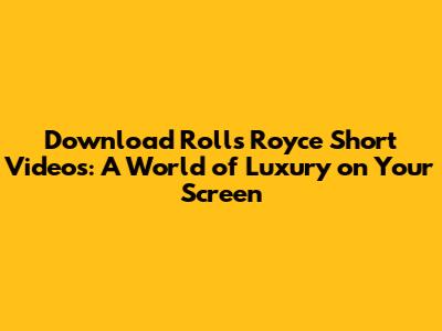 Download Rolls Royce Short Videos: A World of Luxury on Your Screen