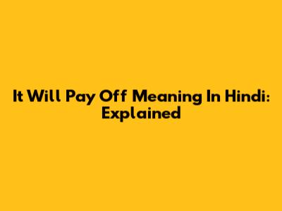 It Will Pay Off Meaning In Hindi: Explained