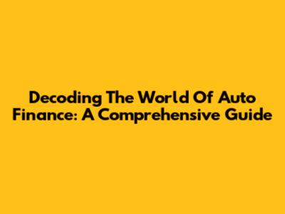 Decoding The World Of Auto Finance: A Comprehensive Guide