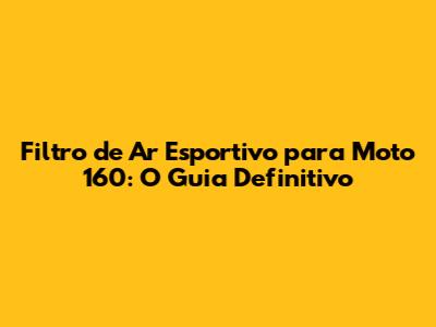 Filtro De Ar Esportivo Para Moto 160: Guia Completo