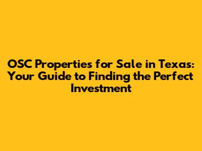 Hey guys! Are you looking to dive into the Texas real estate market and snag some awesome OSC properties? Well, you've come to the right place! Investing in real estate, especially in a vibrant state like Texas, can be a game-changer. Let's break down everything you need to know to find, evaluate, and purchase OSC properties in the Lone Star State.