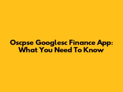 Oscpse Googlesc Finance App: What You Need To Know