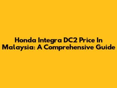 Honda Integra DC2 Price In Malaysia: A Comprehensive Guide