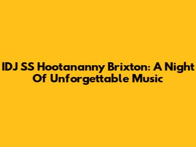IDJ SS Hootananny Brixton: A Night Of Unforgettable Music