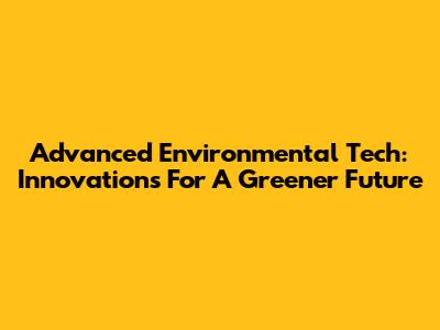 Advanced Environmental Tech: Innovations For A Greener Future