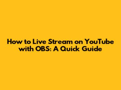 Setting Up OBS for YouTube Live Streaming