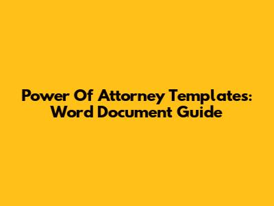 Power Of Attorney Templates: Word Document Guide