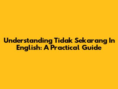 Understanding 'Tidak Sekarang' In English: A Practical Guide