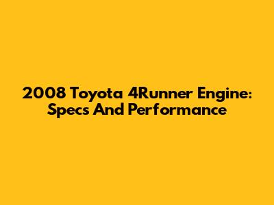 2008 Toyota 4Runner Engine: Specs And Performance
