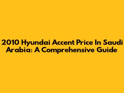 2010 Hyundai Accent Price In Saudi Arabia: A Comprehensive Guide
