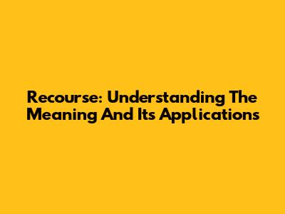 Recourse: Understanding The Meaning And Its Applications