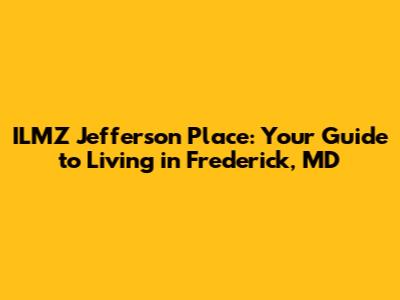Are you considering a move to Frederick, Maryland, and curious about ILMZ Jefferson Place? Well, you've come to the right spot! This article dives deep into what makes ILMZ Jefferson Place a desirable community, covering everything from its location and amenities to the surrounding neighborhood and lifestyle. Whether you're a young professional, a growing family, or someone looking to downsize, understanding the ins and outs of ILMZ Jefferson Place is crucial in making an informed decision. So, let's get started and explore why so many people are calling this place home!