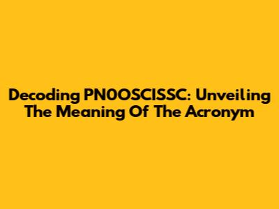 Decoding PN0OSCISSC: Unveiling The Meaning Of The Acronym