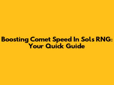 Boosting Comet Speed In Sols RNG: Your Quick Guide
