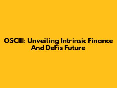 OSCIII: Unveiling Intrinsic Finance And DeFi's Future